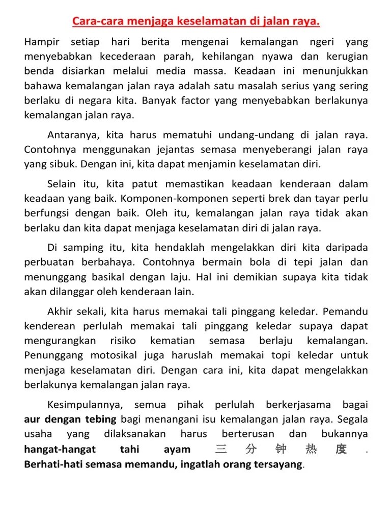 Karangan Kemalangan Jalan Raya Upsr / Karangan Berita Kemalangan Jalan Raya Contoh Karangan Kemalangan Jalan Raya